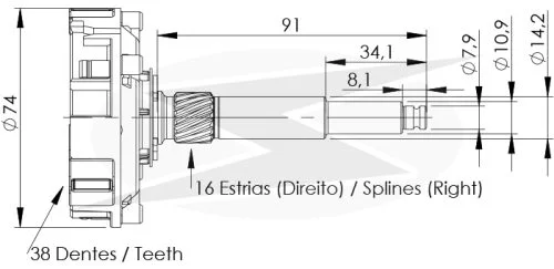 CANTIDAD DE ESTRIAS: 16 (Derecho)