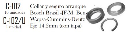 (1) COLLAR Y SEGURO DE IMPULSOR ARRANQUE BOSCH BRASIL – JF – MERCEDES BENZ – WAPSA – CUMMINS – DEUTZ (EJE 14.2 mm) (CON TAPA)