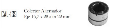(1) COLECTOR DE ALTERNADOR EJE 16.7 x 28 ALTO 22mm