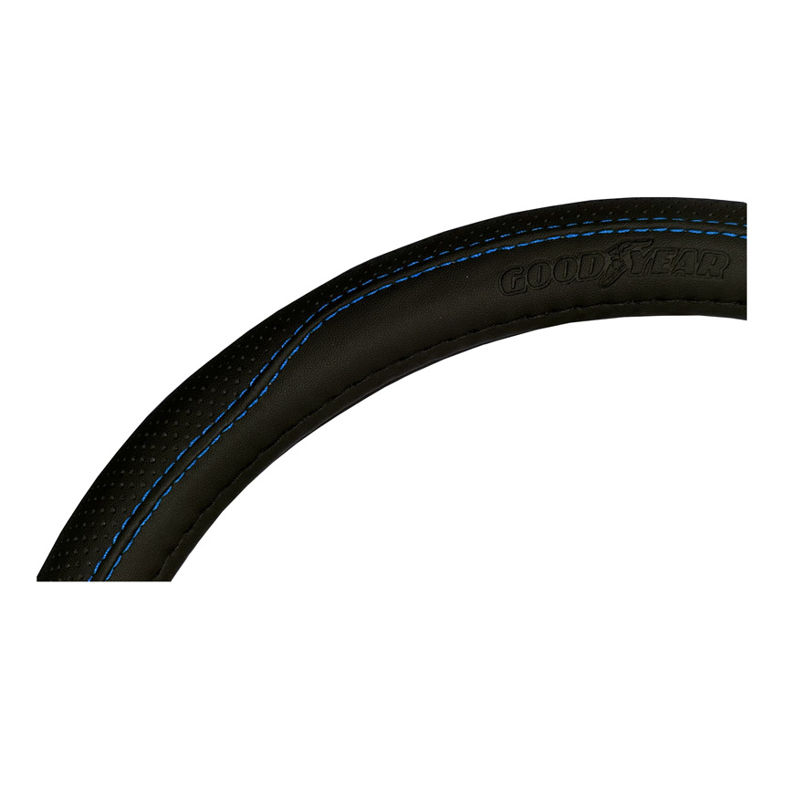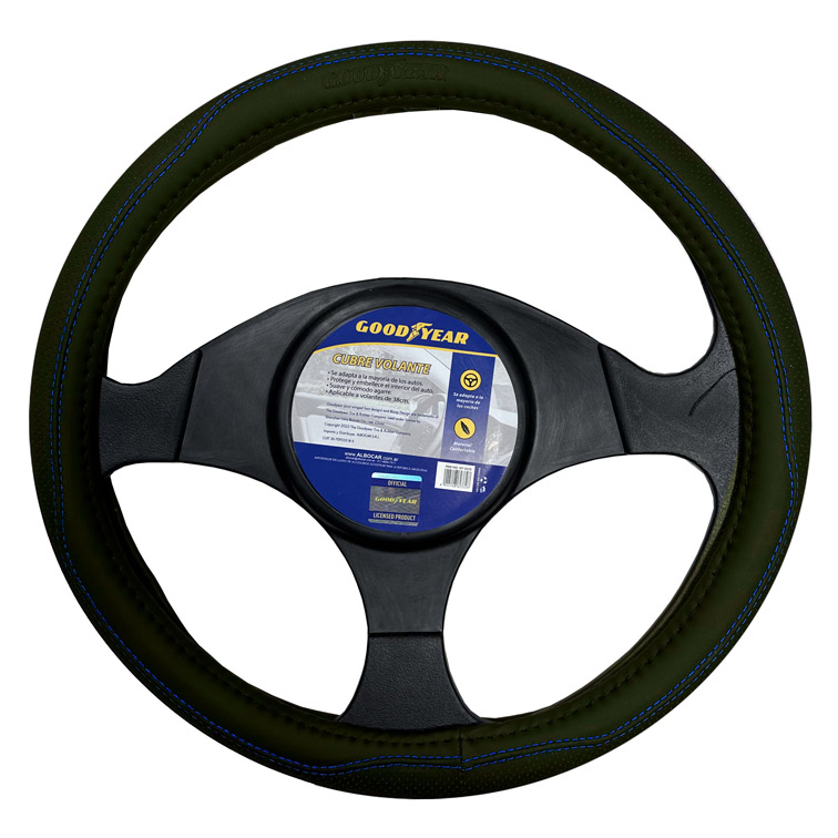 CUBRE VOLANTE GOODYEAR, NEGRO CON COSTURA AZUL, AUTO 38CM