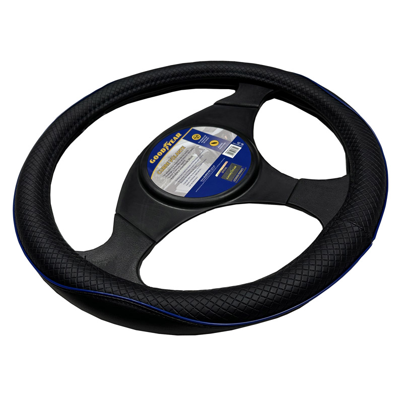 CUBRE VOLANTE GOODYEAR, NEGRO CON RIBETE REFLECTIVO AZUL, AUTO 38CM