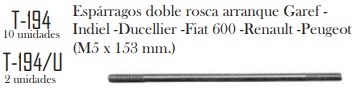 (1) ESPARRAGO DOBLE ROSCA ARRANQUE GAREF – DUCELLIER – FIAT 600 – RENAULT – PEUGEOT (M5 x 153mm)